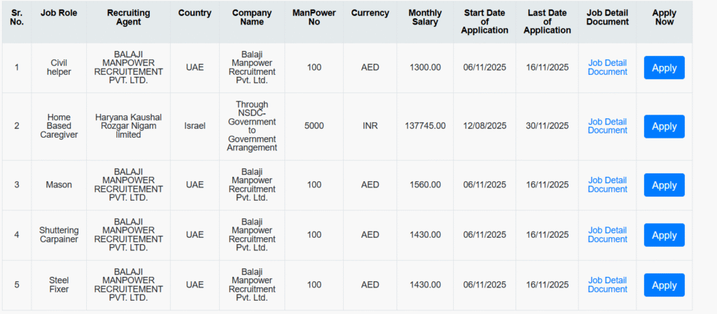 हरियाणा कौशल रोजगार निगम (HKRN Fresher Jobs) मे कुल 05 प्रकार की भर्ती निकली हुई है। ये भर्तिया विदेश मे की जाएगी। इजराइल तथा दुबई जैसे देशों मे ये भर्ती की जाएगी।